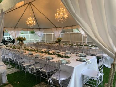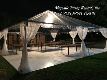 NOTE: The space available being covered by the tent CANNOT have any obstructions and there must be a 1ft clearence available all around the perimeter of the tent. I.e: no trees, bushes, fences or pools. Must be open walkable through space. Tents can not be places about walls, fences, or other obstructions. Once a tent is loaded and delivered, client will be charged for the tent, wether it fits or not. Please keep in mind that we can not convert a tent to a different size. Each tent requires a